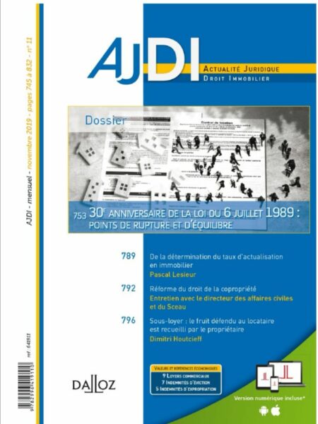 Notre confrère Pascal LESIEUR, membre de la CNEJI, signe ce mois une étude dans l’AJDI, Dalloz.